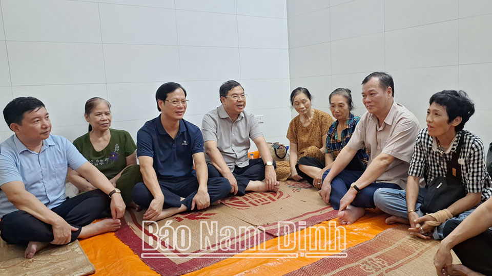 Đối với các hộ dân sống trong các nhà nguy hiểm đang phải sơ tán, đồng chí Bí thư Tỉnh ủy đã ân cần thăm hỏi, động viên bà con yên tâm tránh trú tại điểm sơ tán, yêu cầu các sở, ngành và thành phố Nam Định chú ý cung cấp đầy đủ thực phẩm, các điều kiện sinh hoạt, chăm sóc sức khỏe cho nhân dân cho đến khi được về nhà. Đối với các khu chung cư cũ xuống cấp và các khu nhà nguy hiểm trên địa bàn thành phố Nam Định sẽ chỉ đạo nghiên cứu, sớm có giải pháp để xử lý triệt để, rất mong các hộ dân đang sinh sống tại các khu chung cư cũ, nhà nguy hiểm ủng hộ tỉnh, thành phố khi có phương án xử lý.