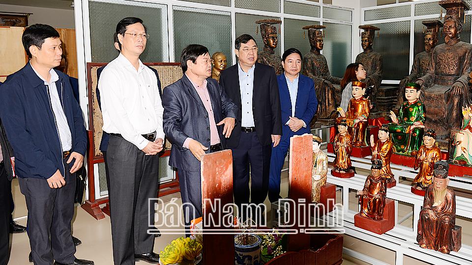 | Đồng chí Bí thư Tỉnh ủy Phạm Gia Túc và lãnh đạo thành phố Nam Định, Sở Văn hóa, Thể thao và Du lịch kiểm tra hiện vật trưng bày tại Bảo tàng tỉnh. |