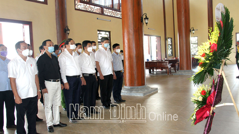 Trước giờ làm việc, đồng chí Bí thư Tỉnh uỷ đã đến dâng hương tưởng nhớ Chủ tịch Hồ Chí Minh và các anh hùng liệt sĩ tại Đền thờ Liệt sĩ huyện Vụ Bản.