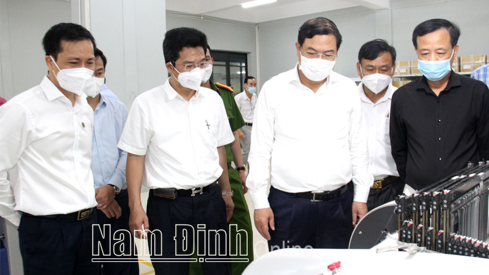 | Đồng chí Phạm Gia Túc, Ủy viên BCH Trung ương Đảng, Bí thư Tỉnh ủy thăm Công ty Dệt Bảo Minh tại Khu công nghiệp Bảo Minh. |
