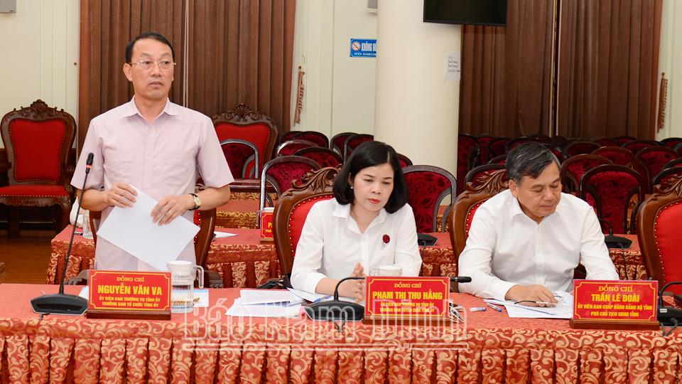 | Đồng chí Trưởng Ban Tổ chức Tỉnh ủy Nguyễn Văn Va phát biểu tại buổi làm việc. |