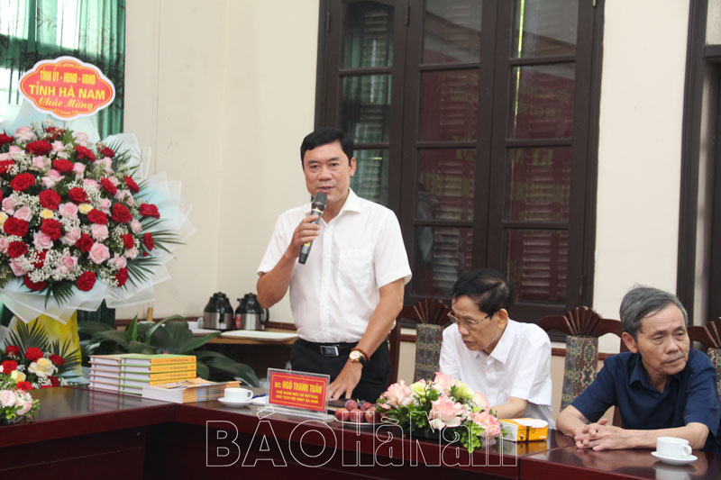 Đến thăm, chúc mừng Tạp chí Sông Châu - Hội VHNT tỉnh, thay mặt Tỉnh ủy, HĐND, UBND tỉnh, đồng chí Bí thư Tỉnh ủy ghi nhận, đánh giá cao và biểu dương những kết quả mà Tạp chí Sông Châu đã đạt được; đồng thời trân trọng cảm ơn lãnh đạo Hội VHNT tỉnh, lãnh đạo, phóng viên, cộng tác viên của Tạp chí Sông Châu đã luôn đồng hành cùng với Đảng bộ, chính quyền và nhân dân trong tỉnh trong việc tuyên truyền chủ trương, đường lối của Đảng, chính sách pháp luật của Nhà nước, của tỉnh; giới thiệu các sáng tác VHNT góp phần quan trọng trong việc quảng bá hình ảnh và con người Hà Nam đến với bạn đọc trong nước và quốc tế.