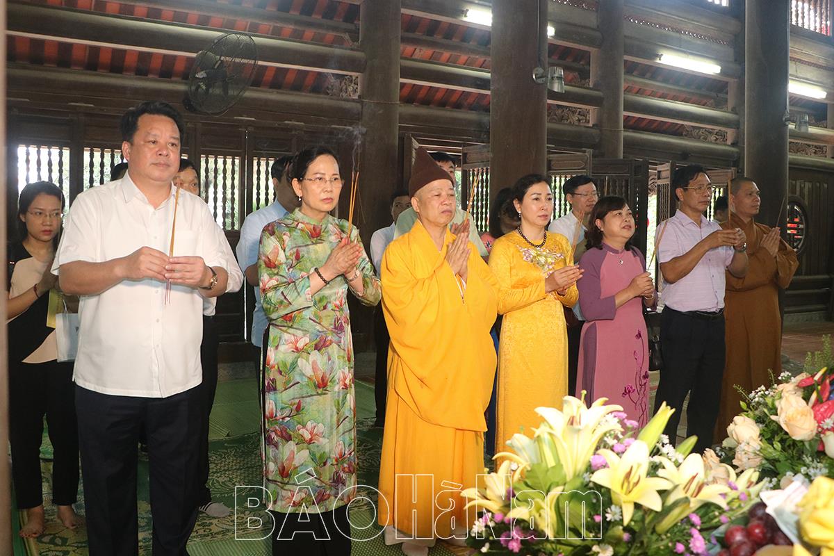 Nhân dịp Lễ Phật đản (Phật lịch 2566 - DL 2022), ngày 8/5, đồng chí Lê Thị Thuỷ, Uỷ viên Trung ương Đảng, Bí thư Tỉnh ủy, Chủ tịch HĐND tỉnh cùng đoàn cán bộ lãnh đạo tỉnh đã tới dâng hương tại chùa Non Nước (Sóc Sơn- Hà Nội), chúc mừng Hòa thượng, tiến sỹ Thích Thanh Quyết, Phó Chủ tịch Hội đồng trị sự Trung ương Giáo hội Phật giáo Việt Nam, Trưởng Ban Giáo dục Phật giáo Trung ương, Viện trưởng Học viện Phật giáo Việt Nam tại Hà Nội, Trưởng Ban trị sự Giáo hội Phật giáo tỉnh Hà Nam. Tham dự đoàn có các đồng chí: Đinh Thị Lụa, Phó Bí thư Thường trực Tỉnh ủy; Lê Văn Tân, nguyên Phó Bí thư Thường trực Tỉnh ủy, nguyên Trưởng Đoàn ĐBQH tỉnh cùng các đồng chí trong Ban Thường vụ Tỉnh ủy, lãnh đạo một số sở, ban, ngành của tỉnh