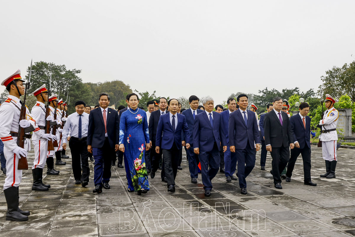 Trong không khí trang nghiêm, các đồng chí lãnh đạo và đoàn đã thành kính dâng hoa, dâng hương tỏ lòng biết ơn vô hạn đối với công lao to lớn của Chủ tịch Hồ Chí Minh, Anh hùng giải phóng dân tộc, Danh nhân văn hóa thế giới, Người đã làm rạng rỡ dân tộc ta, non sông, đất nước ta; thành kính, bày tỏ lòng biết ơn các Anh hùng liệt sĩ. Đoàn đại biểu nguyện đoàn kết một lòng, tuyệt đối trung thành với Đảng, Tổ quốc và Nhân dân; quyết tâm cùng toàn Đảng, toàn dân thực hiện thắng lợi công cuộc đổi mới, tiếp tục nỗ lực bảo vệ vững chắc độc lập, chủ quyền, thống nhất, toàn vẹn lãnh thổ của Tổ quốc; xây dựng đất nước, quê hương ngày càng phát triển.