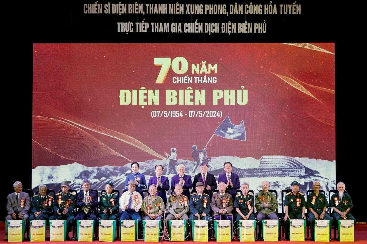 Nhân dịp này, các đồng chí lãnh đạo trung ương, lãnh đạo các tỉnh đã tặng quà tri ân, thăm hỏi, động viên các chiến sĩ Điện Biên, thanh niên xung phong, dân công hỏa tuyến trực tiếp tham gia chiến dịch Điện Biên Phủ dự chương trình.
