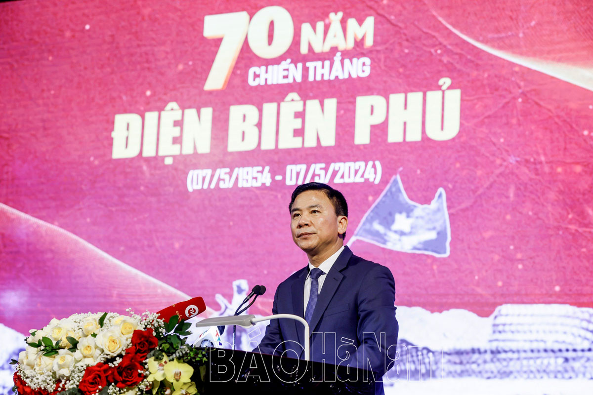 Theo đó, cách đây 70 năm, dưới sự lãnh đạo sáng suốt và tài tình của Trung ương Đảng, đứng đầu là Chủ tịch Hồ Chí Minh, quân và dân ta đã vượt qua muôn vàn khó khăn, thử thách, giành toàn thắng trong Chiến dịch Điện Biên Phủ, góp phần quyết định kết thúc vẻ vang cuộc kháng chiến trường kỳ 9 năm gian khổ chống thực dân Pháp và là mốc son chói lọi trong lịch sử đấu tranh giữ nước vĩ đại của dân tộc ta. Trong lịch sử dựng nước và giữ nước của dân tộc ta, Chiến thắng Điện Biên Phủ là một trong những đỉnh cao chói lọi, một kỳ tích vẻ vang về nghệ thuật chiến tranh nhân dân, thế trận lòng dân, cả nước một lòng, toàn dân đánh giặc.