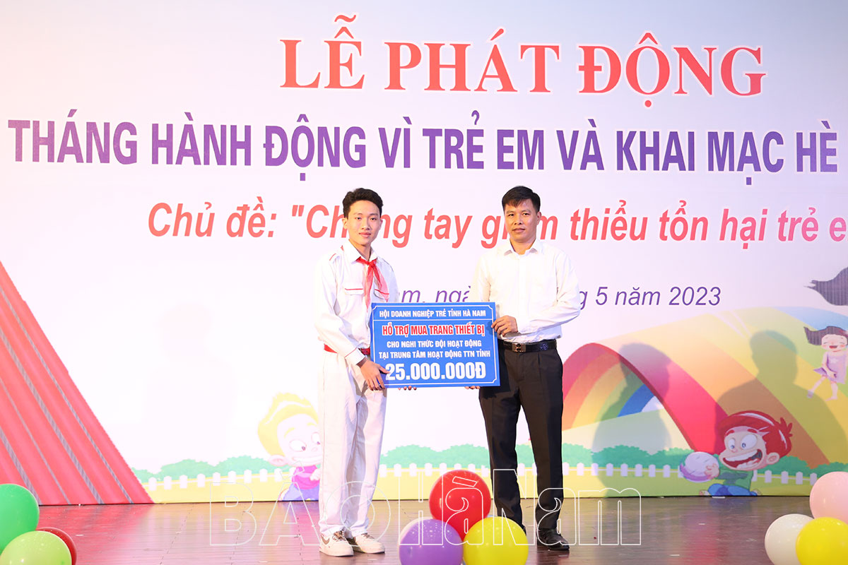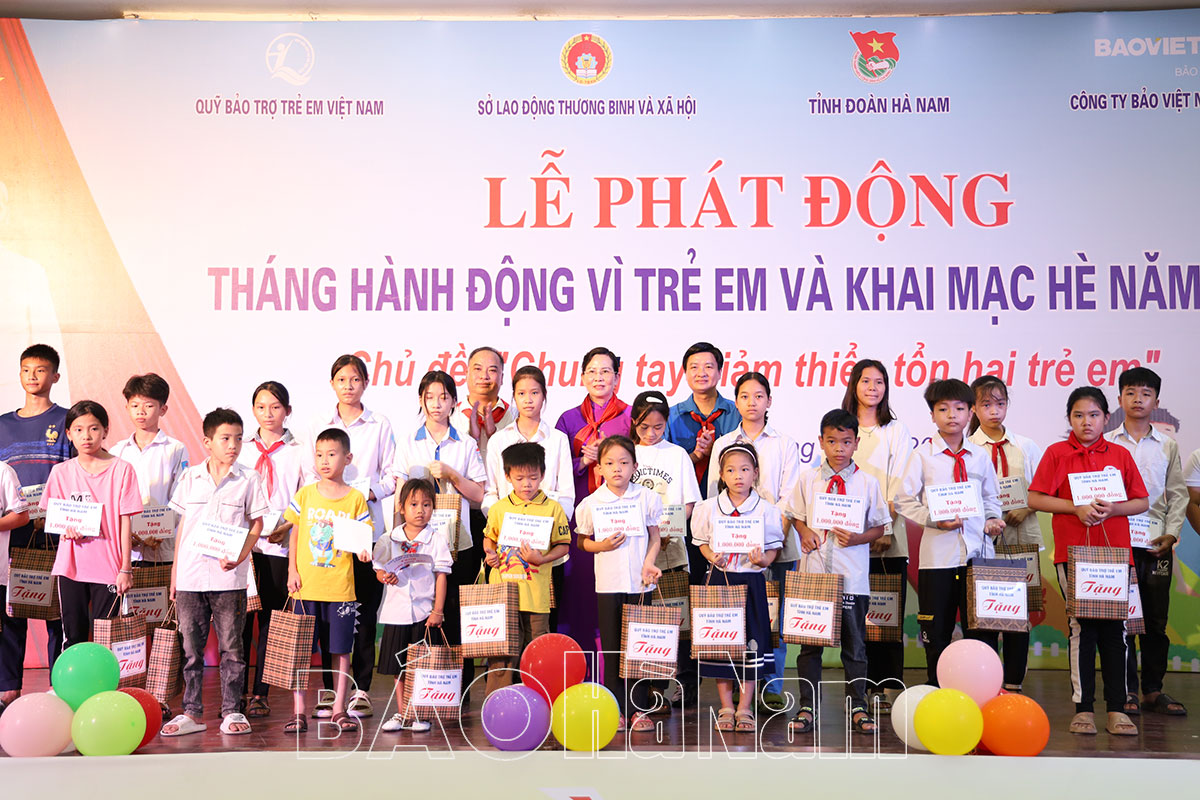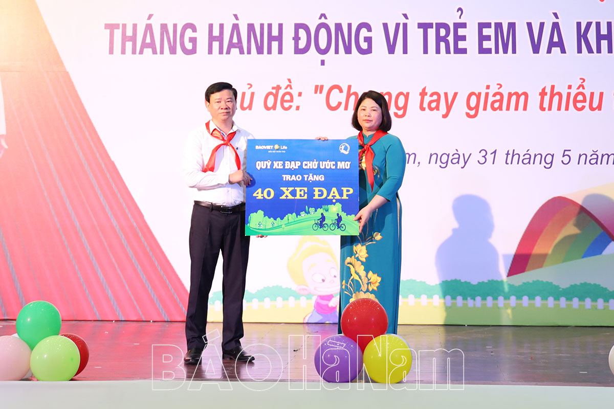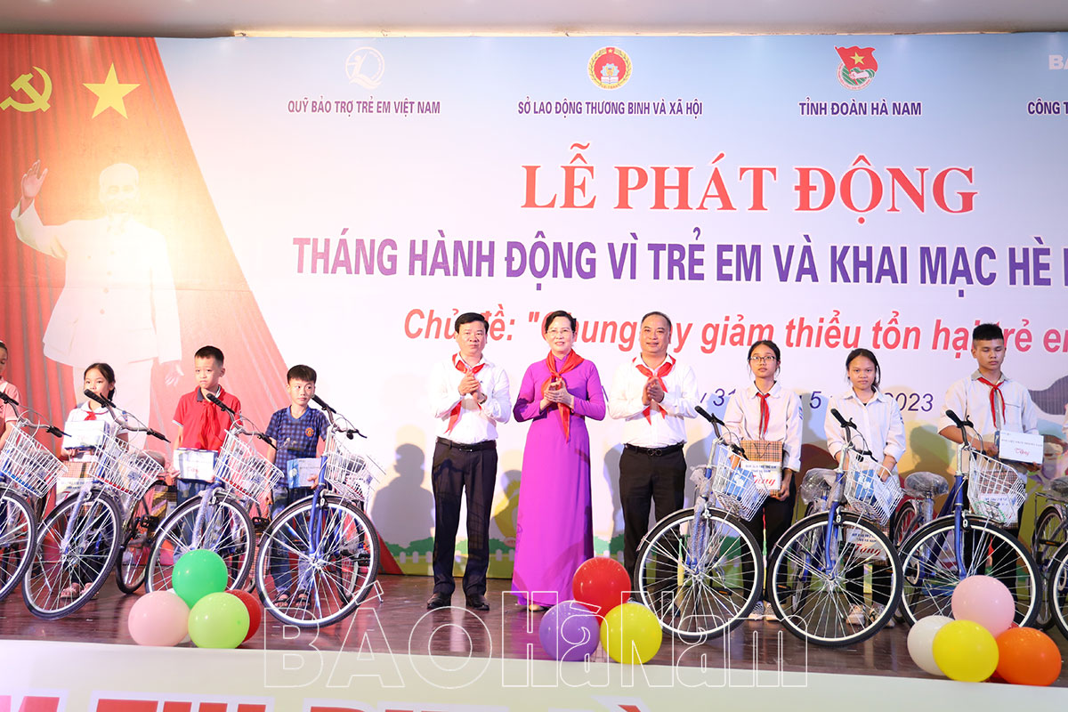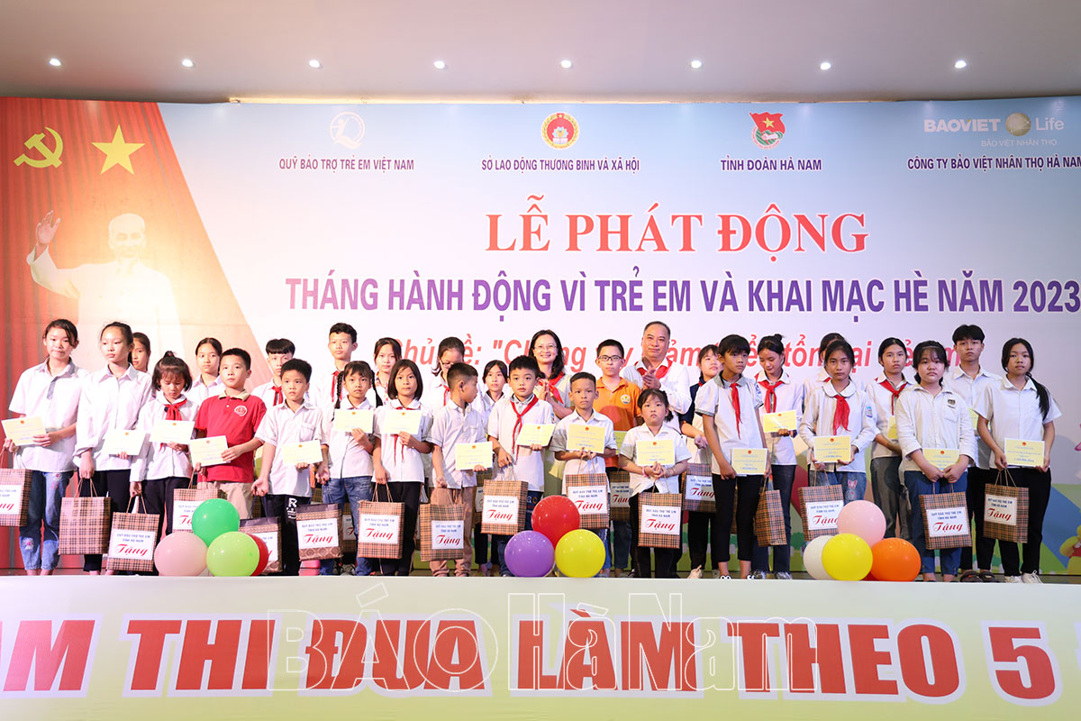 Tại Lễ phát động, Quỹ Bảo trợ Trẻ em Việt Nam, Quỹ Bảo trợ Trẻ em tỉnh tặng 200 suất học bổng, mỗi suất trị giá 1 triệu đồng; Công ty Bảo Việt Nhân thọ Hà Nam thông qua Quỹ Bảo trợ Trẻ em tỉnh tặng 40 xe đạp cho các em thiếu nhi. 240 thiếu nhi dự buổi lễ đều được tặng quà từ Quỹ Bảo trợ Trẻ em tỉnh.