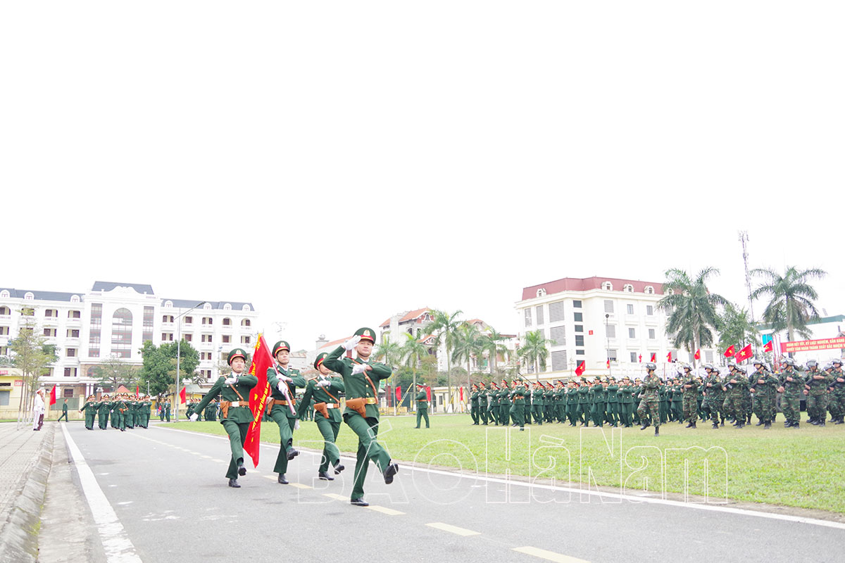 Phát biểu tại lễ ra quân huấn luyện, đồng chí Bí thư Tỉnh uỷ Lê Thị Thủy biểu dương những thành tích của LLVT tỉnh đạt được trong năm 2023. Đồng chí nhấn mạnh: năm 2024 là năm diễn ra nhiều sự kiện chính trị trọng đại của đất nước, năm bản lề thực hiện nhiệm vụ của cả nhiệm kỳ theo Nghị quyết Đại hội XIII của Đảng, Nghị quyết Đại hội Đảng bộ tỉnh lần thứ XX, Nghị quyết Đại hội Đảng bộ Quân sự tỉnh lần thứ XVI. Trên địa bàn tỉnh tình hình an ninh chính trị, trật tự an toàn xã hội cơ bản ổn định, nhưng vẫn tiềm ẩn nhiều yếu tố phức tạp.