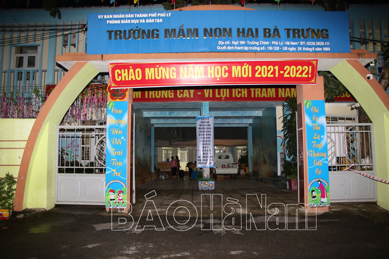 Khu cách ly tập trung trường mầm non Hai Bà Trưng, TP.Phủ Lý