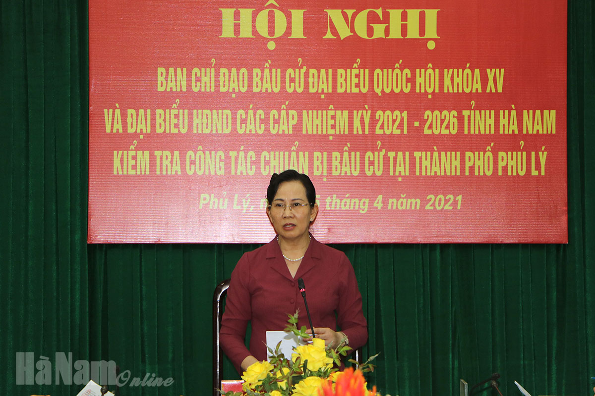 Sáng 15/4, Đoàn công tác của Ban Chỉ đạo bầu cử ĐBQH khóa XV và đại biểu HĐND các cấp nhiệm kỳ 2021-2026 tỉnh do đồng chí Lê Thị Thủy, Ủy viên Trung ương Đảng, Bí thư Tỉnh ủy, Trưởng Đoàn ĐBQH, Trưởng Ban Chỉ đạo bầu cử tỉnh làm Trưởng đoàn đã đi kiểm tra công tác chuẩn bị bầu cử tại thành phố Phủ Lý.