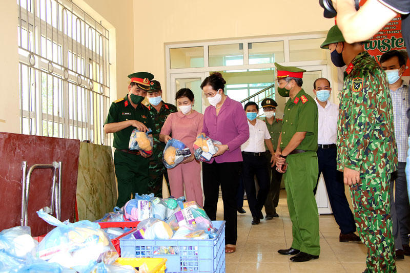 Đồng chí Bí thư Tỉnh ủy Lê Thị Thuỷ ghi nhận và biểu dương những nỗ lực, cố gắng của lực lượng quân đội và các lực lượng phối hợp thực hiện nhiệm vụ tại khu cách ly tập trung đã không quản ngại khó khăn, hoàn thành nhiệm vụ được giao một cách tốt nhất. Đồng chí Bí thư Tỉnh uỷ nhấn mạnh: Đối tượng công dân về cách ly tập trung lần này là phụ nữ có thai, trẻ em và các hộ gia đình có hoàn cảnh đặc biệt khó khăn, vì thế công tác chăm sóc, quản lý, điều hành hoạt động ở khu cách ly cần chu đáo, nghiêm túc để đảm bảo an toàn, tránh lây nhiễm chéo dịch tại đây.