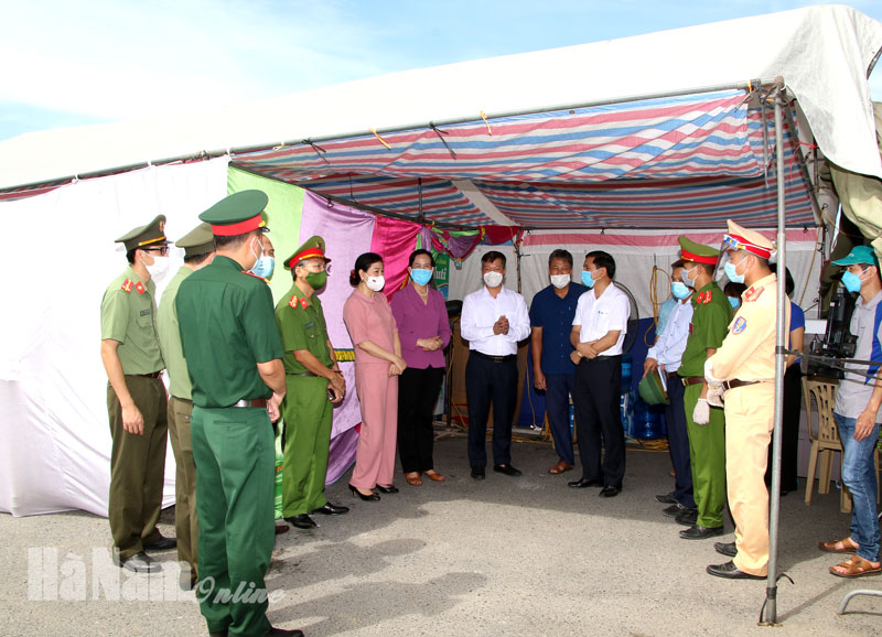 Đến thăm, tặng quà các chốt kiểm dịch tại huyện Kim Bảng, đồng chí Bí thư Tỉnh uỷ Lê Thị Thuỷ ân cần thăm hỏi các lực lượng làm nhiệm vụ tại chốt. Chia sẻ khó khăn đối với các lực lượng tại đây, đồng chí yêu cầu huyện Kim Bảng quan tâm hơn nữa đến điều kiện sinh hoạt và làm việc của cán bộ, chiến sỹ, nhân viên y tế ở các chốt.