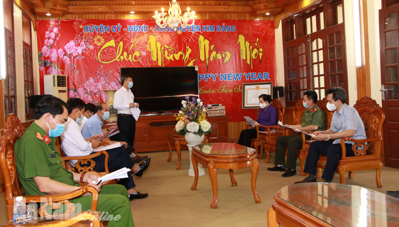 Đồng chí Lê Thị Thủy, Uỷ viên Trung ương Đảng, Bí Thư Tỉnh ủy đánh giá cao công tác triển khai phòng, chống dịch của Kim Bảng khẩn trương, kịp thời, có hệ thống. Xét thấy sự di chuyển phức tạp của bệnh nhân và các khu vực có liên quan đến F1, ngành y tế sẽ tổ chức xét nghiệm cho 3 xã và xét nghiệm cho cán bộ nhằm đảm bảo an toàn để phục vụ bầu cử. Kim Bảng cần phát huy vai trò của tổ Covid cộng đồng. Đồng chí Bí thư Tỉnh ủy nhấn manh: "Nếu thời điểm này chúng ta chần chừ, không để tổ Covid cộng đồng vào cuộc ngay là chúng ta sẽ chậm trễ. Bởi vì, chỉ có tổ này họ mới đi từng ngõ, gõ từng nhà, họ nắm được tình hình dân cư mới làm được."