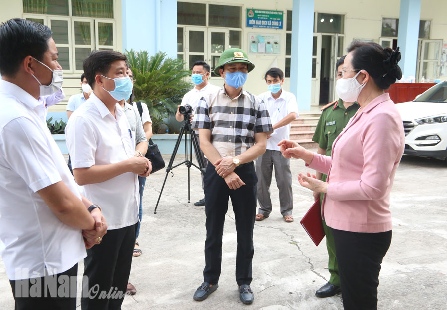 Đồng chí Lê Thị Thủy, Ủy viên Trung ương Đảng, Bí thư Tỉnh ủy ghi nhận, đánh giá cao công tác triển khai phòng, chống dịch của BCĐ huyện Lý Nhân và xã Công Lý. Đồng chí yêu cầu: Đây là thời điểm gần ngày bầu cử đại biểu Quốc hội và HĐND các cấp nên yêu cầu BCĐ huyện Lý Nhân chủ động phương án theo phương châm 4 tại chỗ, đảm bảo các điều kiện tốt nhất để phục vụ công tác phòng, chống dịch; phối hợp với ngành y tế tổ chức truy vết, tổ chức phân loại, xác định các đối tượng F1 ngay tại chỗ, tránh lây chéo trước khi đưa đi cách ly tập trung. Cùng với đó, tích cực tuyên truyền, vận động tuân thủ chặt chẽ các quy định phòng chống dịch; chuẩn bị nhu yếu phẩm cần thiết phục vụ người dân trong những ngày cách ly.