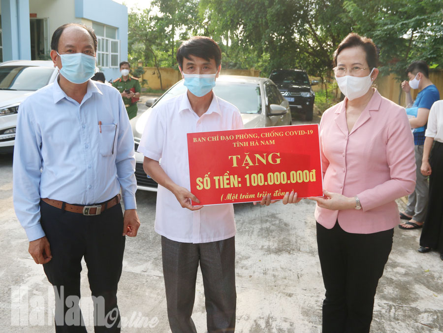 Sau khi làm việc với lãnh đạo huyện Lý Nhân, đồng chí Bí thư Tỉnh ủy đã trực tiếp đi kiểm tra công tác phòng chống dịch tại thôn 3 Phú Đa, xã Công Lý. Nhằm động viên cán bộ và nhân dân xã Công Lý trong công tác phòng chống dịch, thay mặt Tỉnh ủy, HĐND, UBND, Ủy ban MTTQ tỉnh, đồng chí Bí thư Tỉnh ủy đã trao số tiền 100 triệu đồng hỗ trợ cho xã Công Lý./.