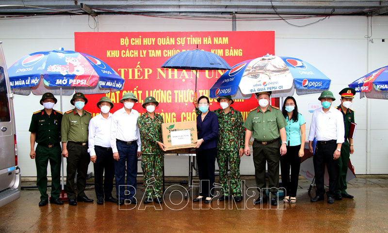 Đồng chí Bí thư Tỉnh uỷ Lê Thị Thuỷ tặng quà cho khu cách ly Tam Chúc