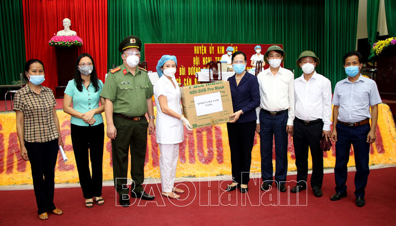 Đồng chí Bí thư Tỉnh uỷ Lê Thị Thuỷ tặng quà cho Trạm Y tế xã Khả Phong, huyện Kim Bảng