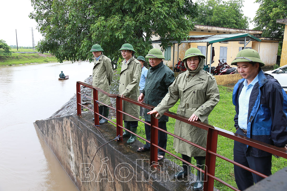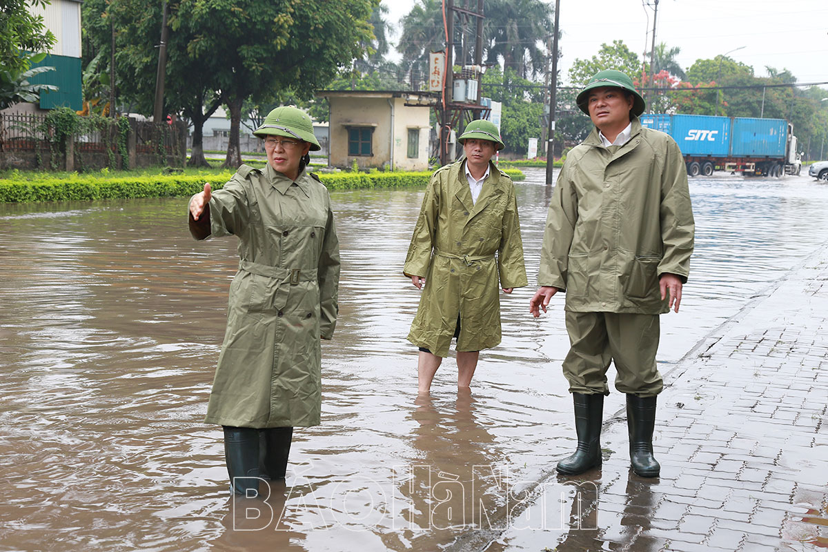 Đồng chí Bí thư Tỉnh ủy Lê Thị Thủy kiểm tra tình hình mưa úng trên địa bàn tỉnh