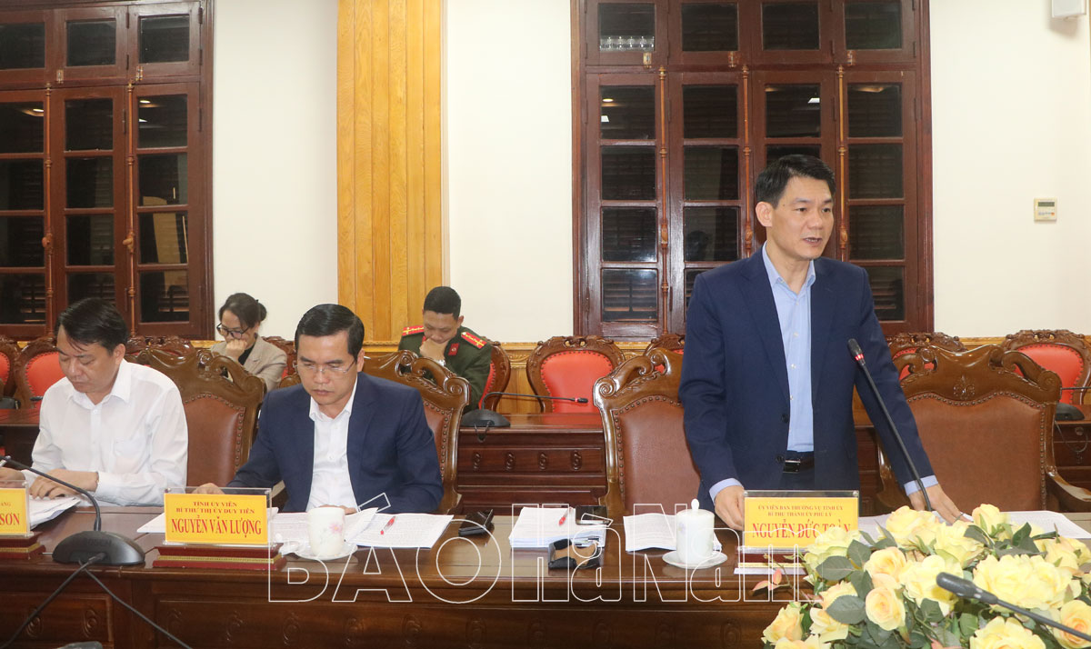 Dự buổi làm việc có đồng chí Nguyễn Anh Chức, Ủy viên BTV Tỉnh ủy, Phó Chủ tịch Thường trực UBND tỉnh; Đào Đình Tùng, Ủy viên BTV Tỉnh ủy, Trưởng Ban Nội chính Tỉnh ủy; đại diện lãnh đạo các ban, ngành, cơ quan, đơn vị có liên quan và bí thư các huyện ủy, thành ủy, thị ủy...