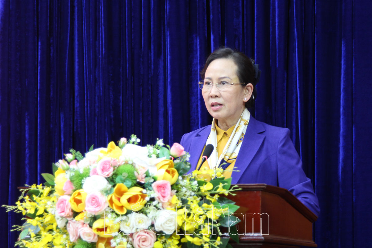 Đồng chí Lê Thị Thủy, Ủy viên Trung ương Đảng, Bí thư Tỉnh ủy, Chủ tịch HĐND tỉnh phát biểu chỉ đạo tại hội nghị.