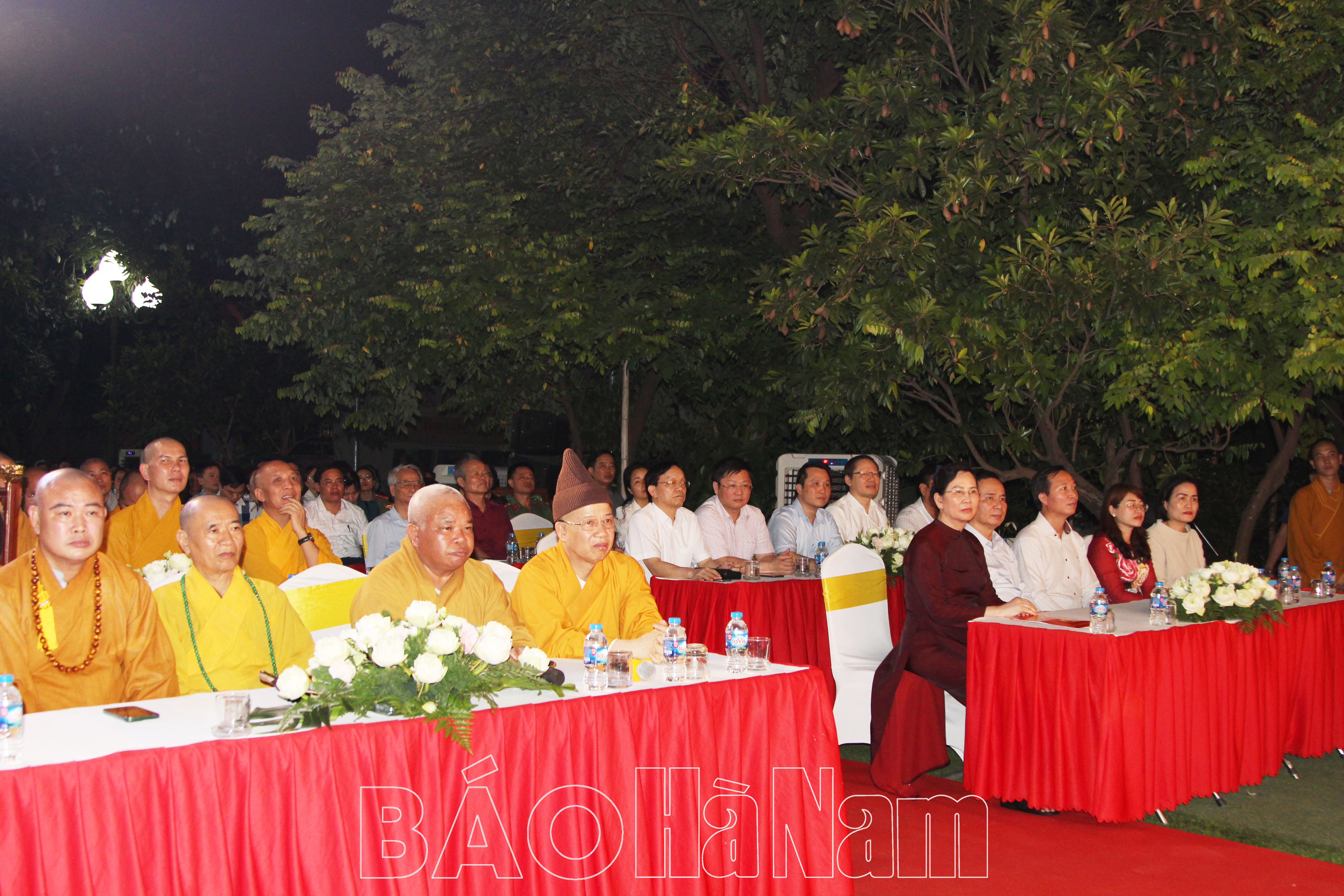 Kính mừng Lễ Phật đản năm 2023- Phật lịch 2567, đồng chí Bí thư Tỉnh ủy Lê Thị Thủy bày tỏ mong muốn các chư tôn đức, giáo phẩm, tăng, ni, phật tử tiếp tục đồng hành cùng dân tộc, đoàn kết, gắn bó, phát huy những thành tích, kết quả tốt đẹp đã đạt được, tăng cường hơn nữa sự đoàn kết, hòa hợp, nối tiếp truyền thống “Hộ Quốc, an Dân”, “Phụng sự chúng sinh là cúng dường chư Phật”, vận động phật tử và nhân dân thực hiện tốt chủ trương, đường lối của Đảng, chính sách, pháp luật của Nhà nước, thực hiện có hiệu quả hơn nữa phong trào thi đua yêu nước, các cuộc vận động, chung sức xây dựng nông thôn mới, đô thị văn minh, góp phần xây dựng tỉnh Hà Nam ngày càng văn minh, giầu đẹp.