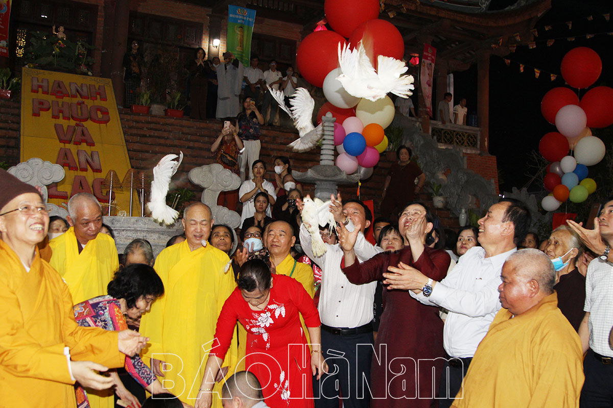 Đoàn cán bộ lãnh đạo tỉnh, đại diện các ban, ngành, cơ quan Trung ương đã cùng Hòa thượng Thích Thanh Quyết và các vị đại biểu, chư vị giáo phẩm, tăng, ni và đồng bào Phật tử thực hiện nghi Lễ tắm Phật, phóng sinh và thả đèn hoa đăng nguyện cầu đón một mùa Phật đản an lạc, hạnh phúc.