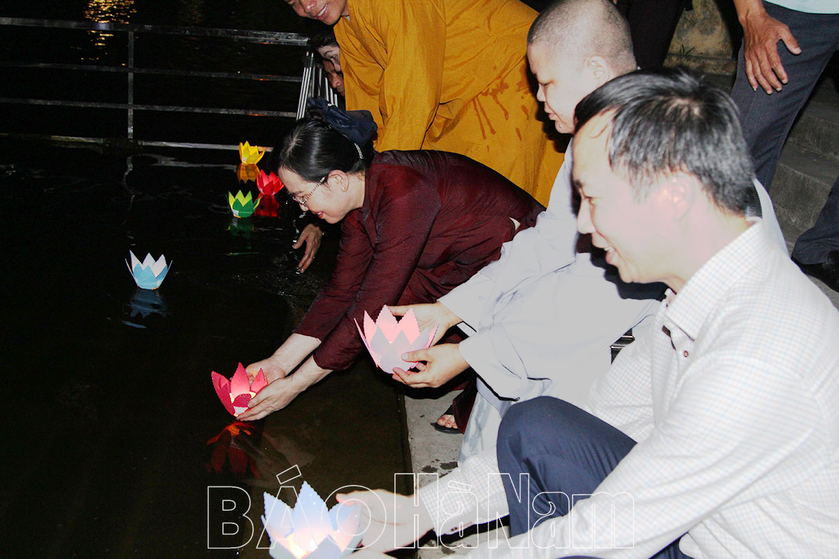 Đồng chí Bí thư Tỉnh ủy Lê Thị Thủy thực hiện nghi lễ phóng sinh và thả đèn hoa đăng.
