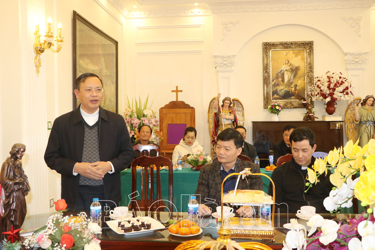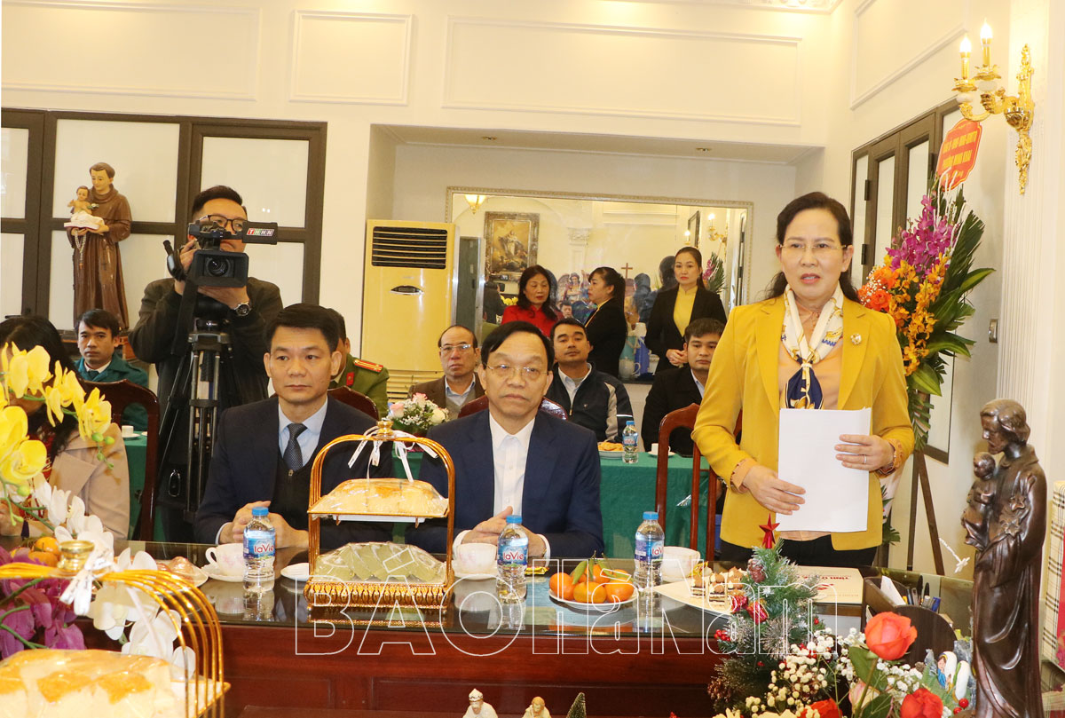 Nhân dịp này, thay mặt Tỉnh ủy, HĐND, UBND, Ủy ban MTTQ tỉnh, đồng chí Bí thư Tỉnh ủy Lê Thị Thủy đã tặng hoa và quà, chúc mừng Linh mục Bùi Quang Tào cùng bà con giáo dân trong giáo xứ năm mới an lành, đón lễ giáng sinh vui tươi, hạnh phúc, tràn đầy hồng ân Thiên Chúa.