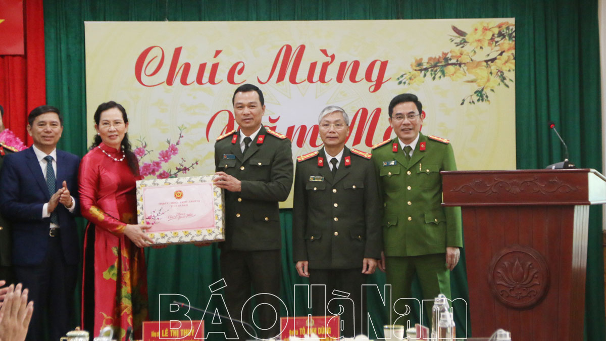 Thay mặt toàn lực lượng Công an Hà Nam, Đại tá Tô Anh Dũng, Ủy viên Ban Thường vụ (BTV) Tỉnh ủy, Giám đốc Công an tỉnh bày tỏ sự cảm ơn sâu sắc đối với các đồng chí lãnh đạo Tỉnh ủy, HĐND, UBND tỉnh đã quan tâm, động viên CBCS trong những ngày làm việc căng thẳng, vất vả. Đồng thời hứa với lãnh đạo tỉnh sẽ cùng với CBCS trong toàn lực lượng làm tròn trách nhiệm, bảo đảm nhân dân đón Tết an vui, hạnh phúc và lành mạnh.