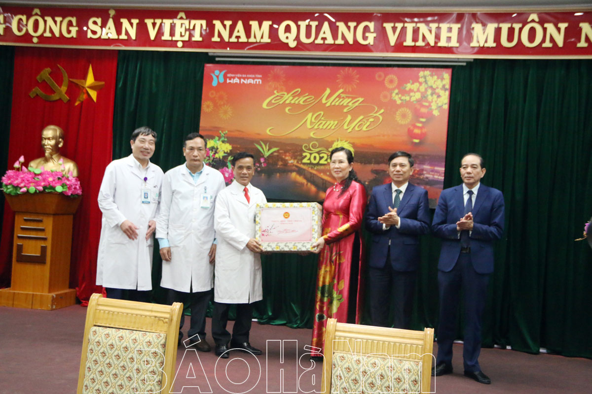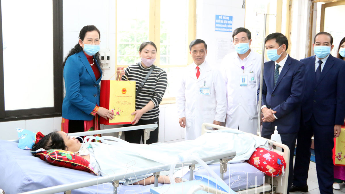 Chuẩn bị bước sang năm mới Giáp Thìn 2024, đồng chí Bí thư Tỉnh ủy Lê Thị Thủy đã trao quà, gửi đến đội ngũ y, bác sĩ, NLĐ BVĐK tỉnh cùng gia đình đón mùa Xuân vui tươi, an lành và hạnh phúc. Nhân dịp này, đồng chí Bí thư Tỉnh ủy đã thăm, tặng quà cho các bệnh nhân đang điều trị tại một số khoa của BVĐK tỉnh và tham quan chương trình “Tết ấm cho người bệnh” do Công đoàn BVĐK tỉnh tổ chức./.