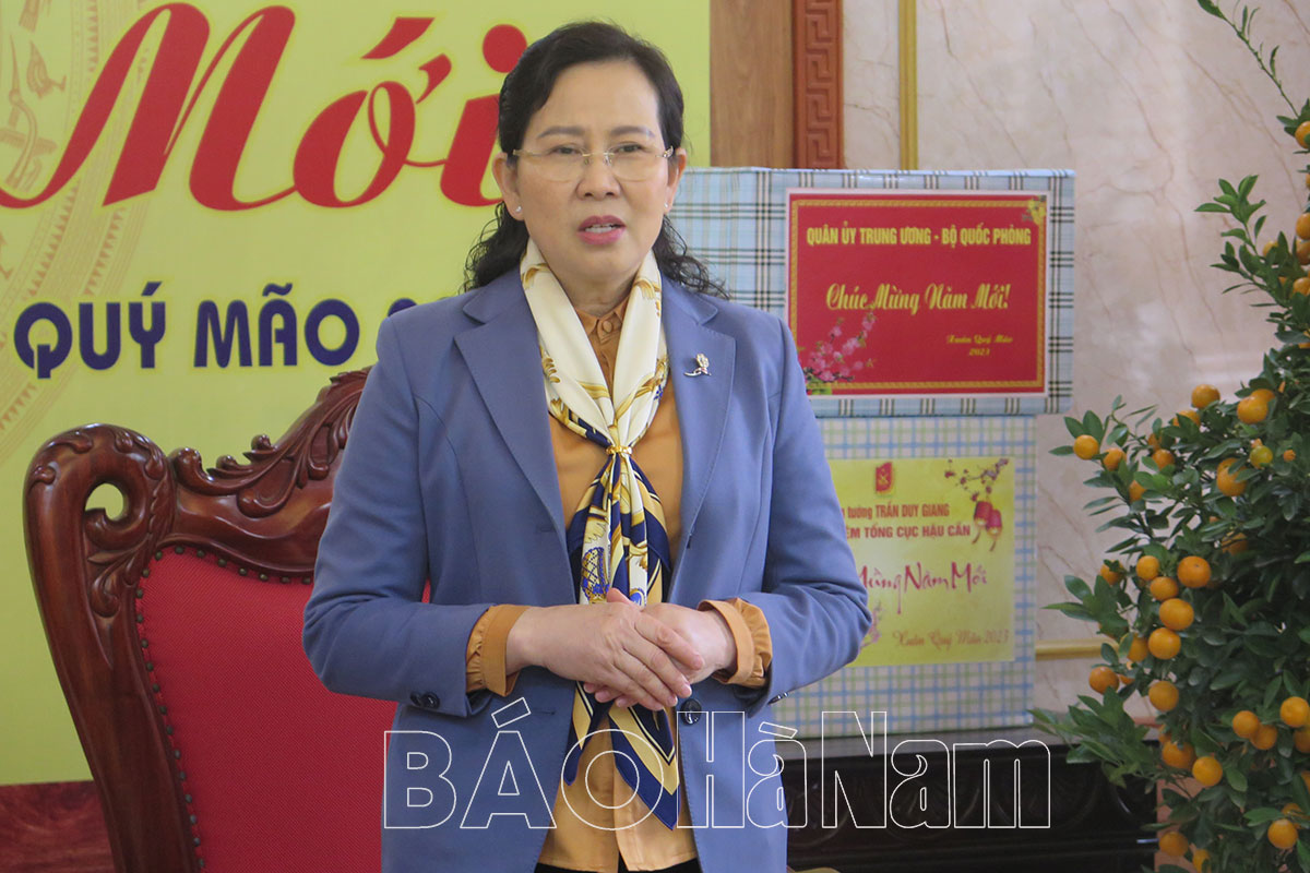 Đồng chí Bí thư Tỉnh uỷ Lê Thị Thủy thăm, chúc Tết tại Bộ CHQS tỉnh