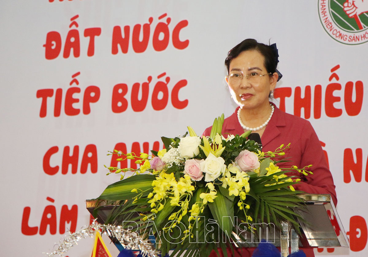 Đồng chí Lê Thị Thủy, Ủy viên Trung ương Đảng, Bí thư Tỉnh ủy, Chủ tịch HĐND tỉnh phát biểu tại Chương trình.