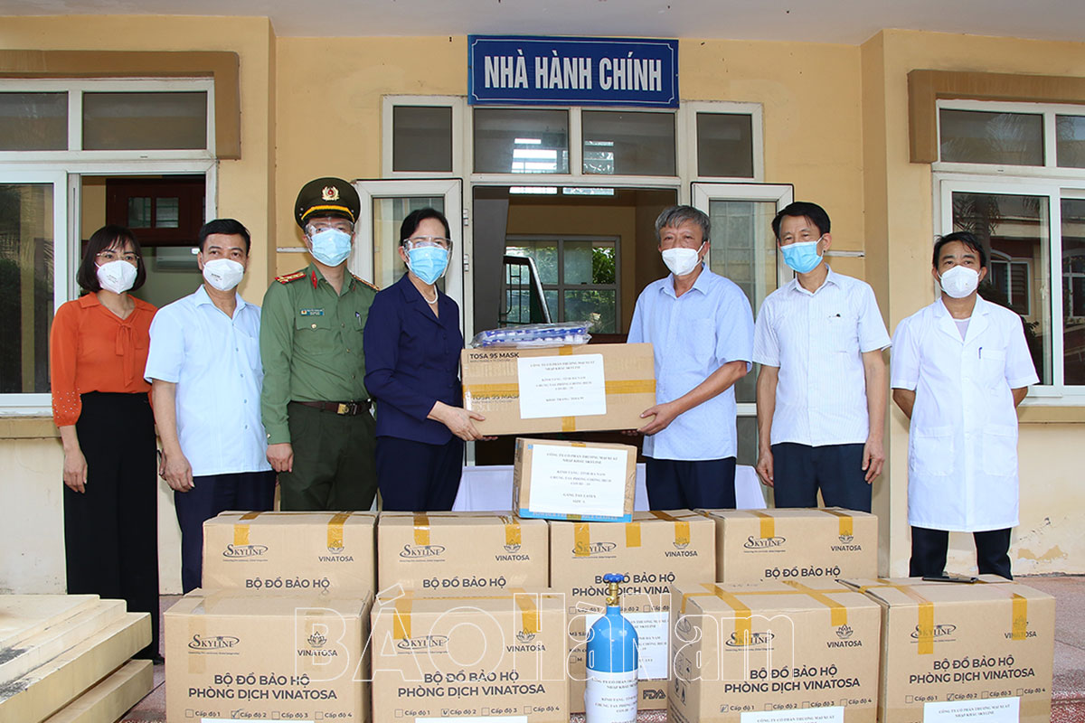 Đồng chí Bí thư Tỉnh ủy Lê thị Thủy tặng bảo hộ, khẩu trang y tế cho Bệnh viện Lao và Bệnh phổi.