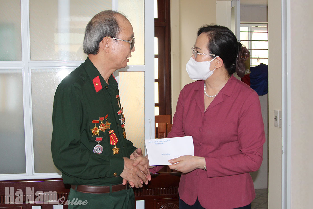 Nhân kỷ niệm 74 năm Ngày Thương binh-Liệt sỹ (27/7/1947-27/7/2021), chiều 23/7, đồng chí Lê Thị Thủy, Ủy viên Trung ương Đảng, Bí thư Tỉnh ủy, Chủ tịch HĐND tỉnh đã tới thăm gia đình người có công và đại diện các thương, bệnh binh của Trung tâm nuôi dưỡng thương bệnh binh nặng và điều dưỡng người có công tỉnh Hà Nam. Cùng đi có lãnh đạo cơ quan, ban, ngành của tỉnh và huyện Thanh Liêm.