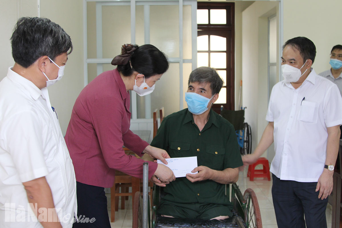 Đồng chí Bí thư Tỉnh ủy Lê Thị Thủy tặng quà, thăm hỏi sức khỏe thương bệnh binh tại Trung tâm nuôi dưỡng thương bệnh binh nặng và điều dưỡng người có công tỉnh Hà Nam.