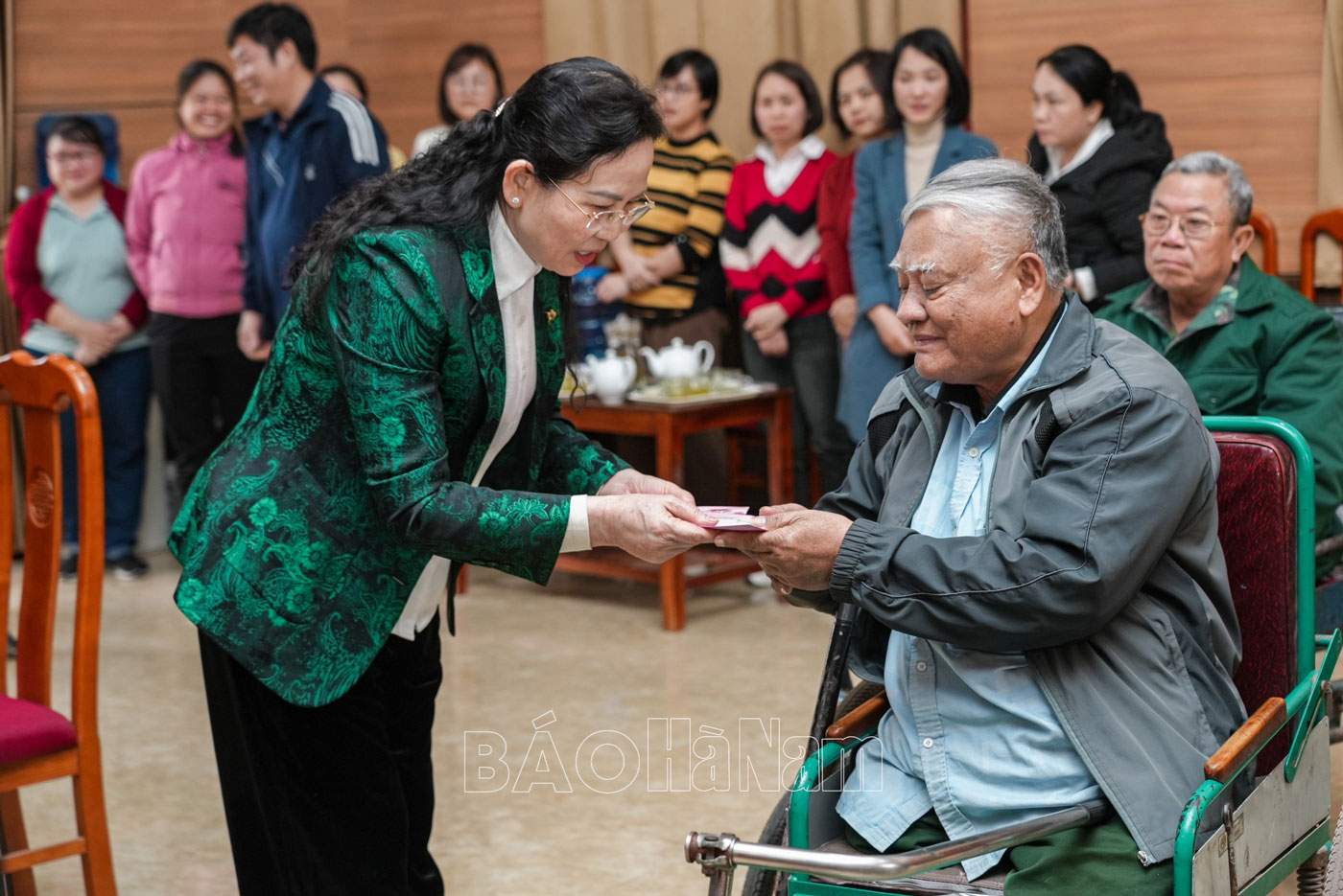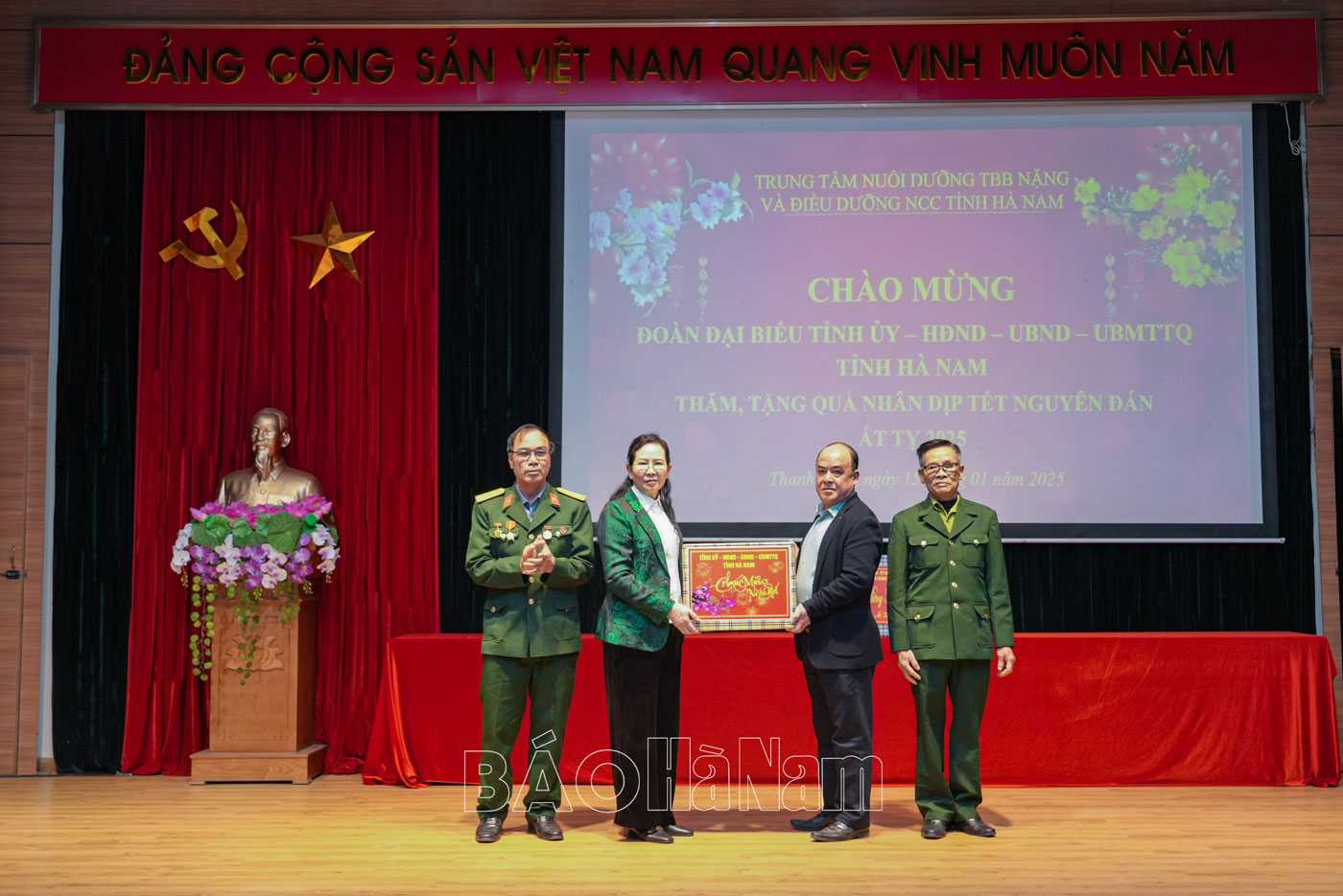 Nhân dịp này, đoàn công tác của tỉnh, huyện Thanh Liêm đã đến thăm và tặng quà, chúc Tết Trung tâm Nuôi dưỡng Thương bệnh binh nặng và Điều dưỡng người có công tỉnh. Đồng chí Bí thư Tỉnh ủy Lê Thị Thủy ghi nhận, biểu dương những thành tích mà trung tâm đạt được trong thời gian qua, khẳng định suốt hơn 50 năm qua, trung tâm đã thực sự trở thành ngôi nhà chung ấm áp của các thương, bệnh binh, người có công.