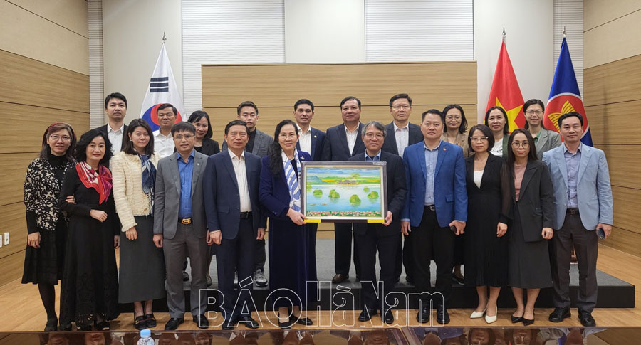 Đồng chí Bí thư Tỉnh ủy Lê Thị Thủy và đoàn công tác thăm và làm việc với Đại sứ quán Việt Nam tại Hàn Quốc.