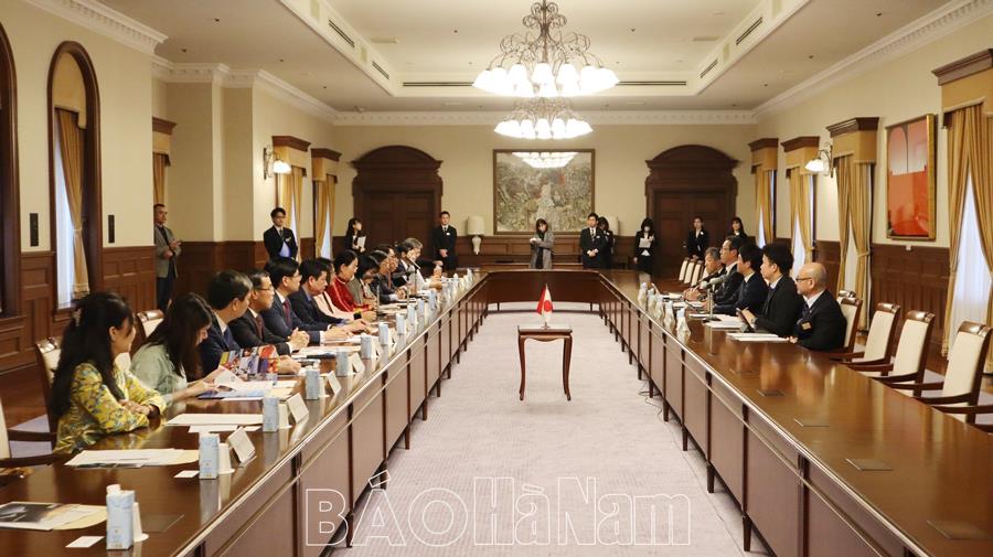 Phát biểu tại buổi làm việc, ông Ngô Trịnh Hà - Tổng lãnh sự nước Cộng hoà XHCN Việt Nam tại Osaka (Kansai), lãnh đạo tỉnh Hyogo và thành phố Kobe đánh giá cao sự quan tâm tạo điều kiện của tỉnh Hà Nam đối với các doanh nghiệp Nhật Bản trên địa bàn tỉnh; nhất là sau khi Hà Nam tổ chức thành công Hội thảo xúc tiến đầu tư tại thành phố Kobe với trên 100 nhà đầu tư vào tháng 4/2023. Đồng thời cam kết sẽ tăng cường tổ chức các đoàn công tác xúc tiến đầu tư tại Hà Nam, góp phần thực hiện hiệu quả bản ký kết giao lưu kinh tế giữa Hà Nam và tỉnh Hyogo và thành phố Kobe. Lãnh đạo tỉnh Hyogo và thành phố Kobe cũng mong muốn thời gian tới tỉnh Hà Nam tăng cường hợp tác trong việc đào tạo nguồn lao động trẻ của tỉnh để làm việc tại Nhật Bản cũng như các doanh nghiệp Nhật Bản tại Hà Nam.