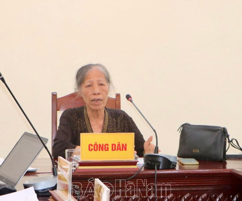 Tại hội nghị, bà Trần Thị Thoan - trú tại số 110, G5C, ngõ 32A, phố Hào Nam, phường Ô Chợ Dừa, quận Đống Đa, thành phố Hà Nội (hiện nay đang sinh sống tại Tổ dân phố Văn Phái, phường Bạch Thượng, Thị xã Duy Tiên) phản ánh việc gia đình ông Nguyễn Văn Tĩnh (cháu bà Thoan) trú tại Tổ dân phố Văn Phái, phường Bạch Thượng, thị xã Duy Tiên có hành vi chửi bới, xúc phạm, lăng mạ, đe dọa tính mạng của bà; Gia đình ông Nguyễn Văn Tĩnh ngăn cấm và không cho bà được sử dụng thửa đất số 211, tờ bản đồ PL11, diện tích 138m² tại tổ dân phố Văn Phái, phường Bạch Thượng; Chính quyền phường Bạch Thượng tiếp tay, bao che cho ông Nguyễn Văn Tĩnh để làm sai lệch mốc giới thửa đất nêu trên và phần mộ của cụ Lê Thị Tuyến (mẹ đẻ bà Thoan) bị mất, bà không tìm thấy phần mộ để hương khói.