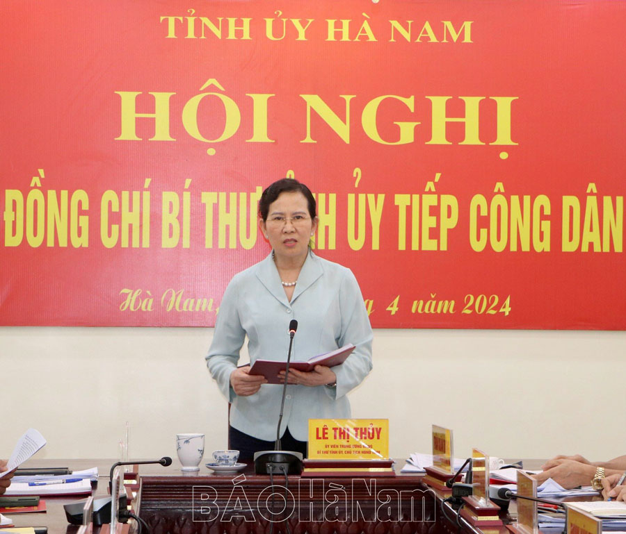 Thực hiện chương trình công tác, chiều 24/4, đồng chí Lê Thị Thủy, Ủy viên Trung ương Đảng, Bí thư Tỉnh ủy, Chủ tịch HĐND tỉnh chủ trì hội nghị tiếp công dân định kỳ tháng 4/2024.