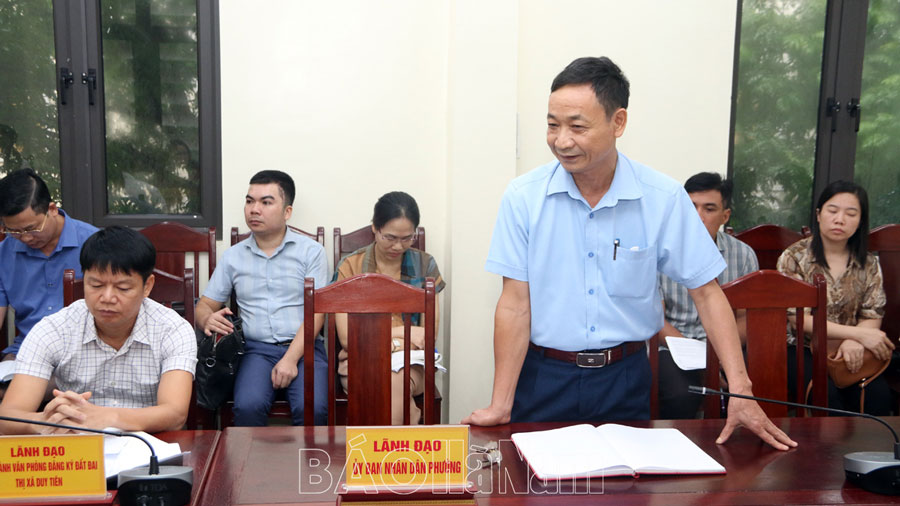 Tại hội nghị, công dân Phạm Hồng Trường (trú tại Tổ dân phố Đôn Lương, phường Yên Bắc, thị xã Duy Tiên) đề nghị cơ quan có thẩm quyền xem xét, điều chỉnh thông tin sai lệch trong giấy chứng nhận quyền sử dụng đất (QSDĐ) đã cấp năm 2013 cho gia đình ông.