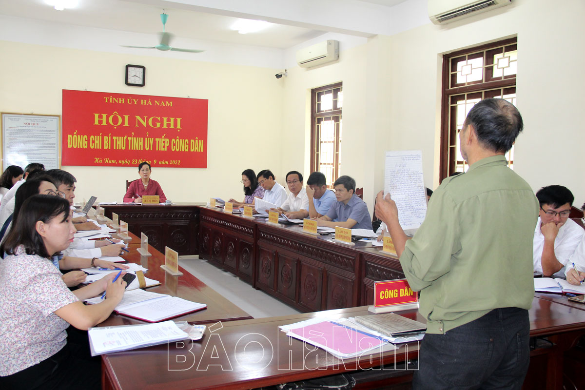 Sáng 23/9, tại Trụ sở Tiếp công dân tỉnh Hà Nam, đồng chí Lê Thị Thủy, Ủy viên Trung ương Đảng, Bí thư Tỉnh ủy, Chủ tịch HĐND tỉnh đã thực hiện phiên tiếp công dân định kỳ tháng 9/2022.