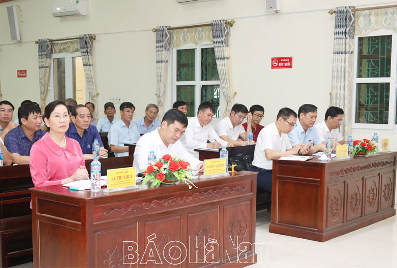 Đồng chí Bí thư Tỉnh ủy Lê Thị Thủy cùng các đại biểu HĐND tỉnh dự hội nghị tiếp xúc cử tri xã Mộc Bắc, thị xã Duy Tiên.