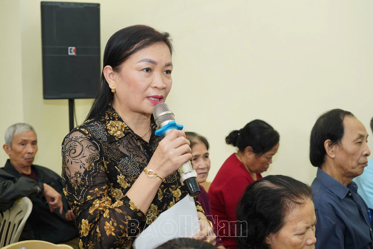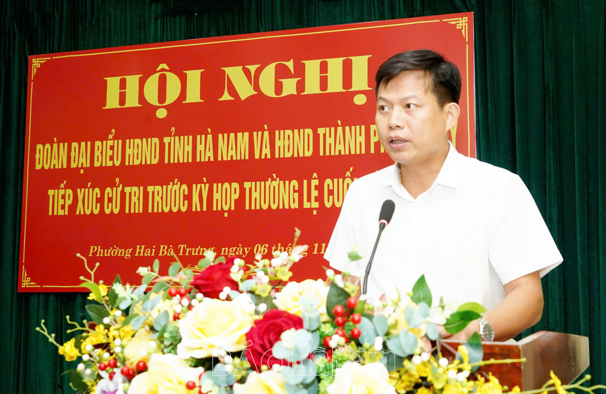 Đại diện cử tri phường Hai Bà Trưng đã đề xuất một số nội dung: đề nghị tỉnh kiến nghị Chính phủ có giải pháp tháo gỡ khó khăn sớm đưa Bệnh viện Bạch Mai, Bệnh viện Việt Đức cơ sở Hà Nam đi vào hoạt động; quan tâm đầu tư trang thiết bị y tế và có cơ chế thu hút nhân tài đối với đội ngũ y, bác sĩ trình độ cao về công tác tại các cơ sở y tế trên địa bàn; đề nghị tỉnh quan tâm chỉ đạo tháo gỡ khó khăn, vướng mắc liên quan đến đất 5%, 7% để sớm cấp giấy chứng nhận quyền sử dụng đất cho nhân dân; sớm nghiên cứu, xem xét, điều chỉnh bổ sung nâng cấp hệ thống kè, trạm bơm trên trên địa bàn thành phố, hạn chế tình trạng úng ngập cục bộ khu vực nội thành; xem xét, hỗ trợ kinh phí đối với chức danh phó chủ tịch một số tổ chức chính trị - xã hội cấp xã; sớm quy hoạch điểm đỗ xe ô tô theo từng khu vực, tránh ùn tắc giao thông; đề nghị tỉnh, thành phố quan tâm cải tạo cảnh quan môi trường tại hồ Chùa Bầu, công viên Nguyễn Khuyến, công tác vệ sinh môi trường tại một số tuyến đường…