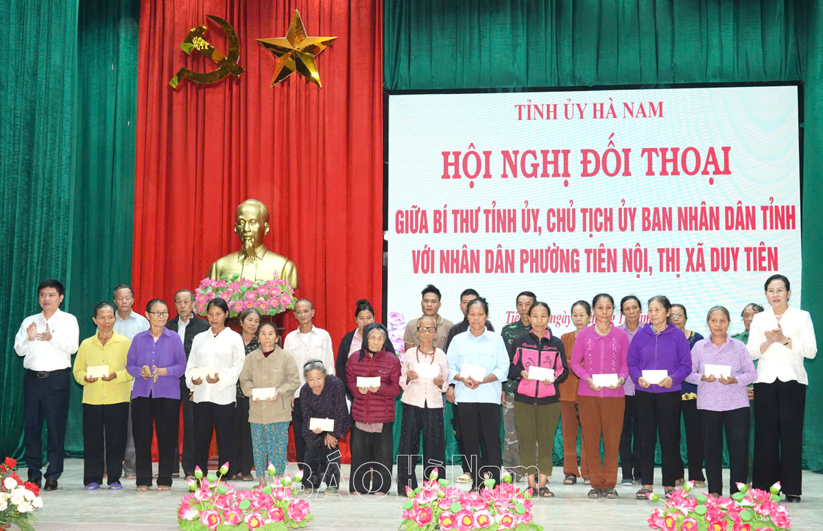 Sáng 19/11, Tỉnh ủy tổ chức hội nghị đối thoại giữa người đứng đầu cấp ủy, chính quyền với nhân dân phường Tiên Nội, thị xã Duy Tiên. Các đồng chí: Lê Thị Thủy, Ủy viên Trung ương Đảng, Bí thư Tỉnh ủy, Chủ tịch HĐND tỉnh; Trương Quốc Huy, Phó Bí thư Tỉnh ủy, Chủ tịch UBND tỉnh, Trưởng Đoàn đại biểu Quốc hội tỉnh chủ trì hội nghị.