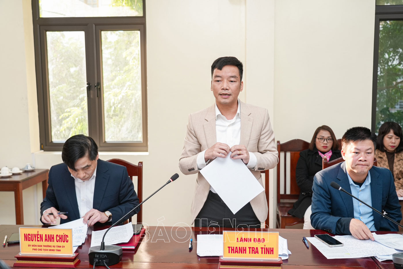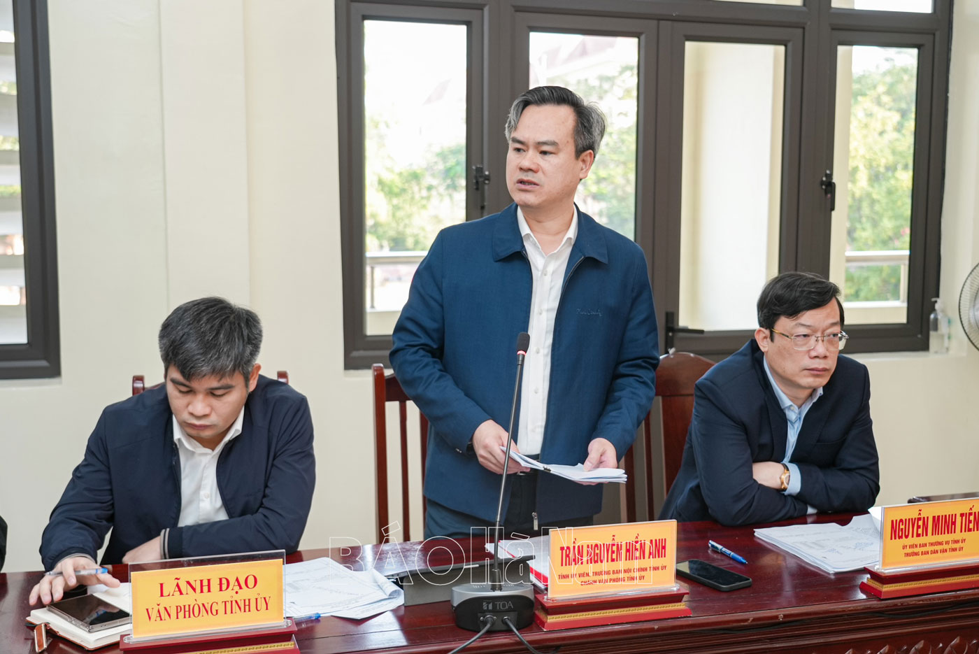 Đồng chí Nguyễn Anh Chức, Ủy viên BTV Tỉnh ủy, Phó Chủ tịch Thường trực UBND tỉnh phát biểu tại hội nghị.Đồng chí Nguyễn Minh Tiến, Ủy viên BTV Tỉnh ủy, Trưởng Ban Dân vận Tỉnh ủy phát biểu tại hội nghị.