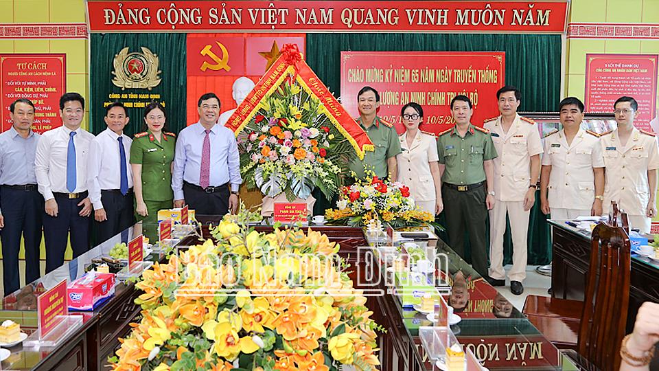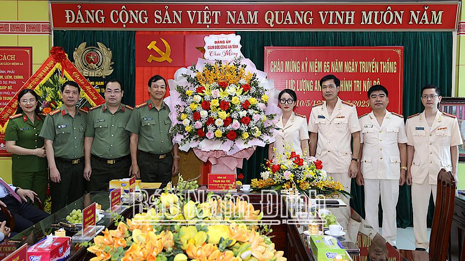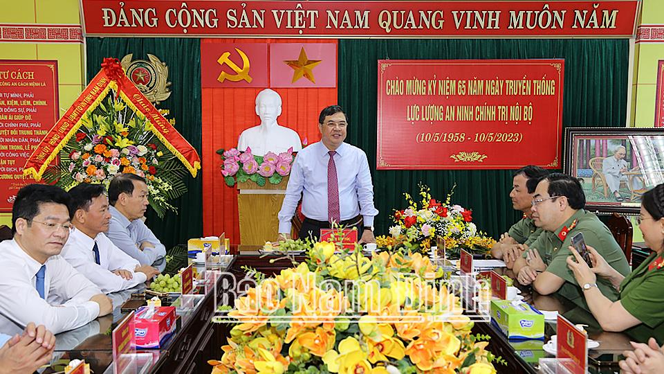 Nhân kỷ niệm 65 năm Ngày truyền thống lực lượng An ninh chính trị nội bộ (10-5-1958 - 10-5-2023), sáng 9-5, đồng chí Phạm Gia Túc, Ủy viên BCH Trung ương Đảng, Bí thư Tỉnh ủy đã đến thăm, chúc mừng cán bộ, chiến sĩ lực lượng An ninh chính trị nội bộ Công an tỉnh. Cùng đi với đồng chí Bí thư Tỉnh ủy có các đồng chí Ủy viên Ban TVTU: Nguyễn Phùng Hoan, Phó Chủ tịch Thường trực HĐND tỉnh; Trần Anh Dũng, Phó Chủ tịch Thường trực UBND tỉnh; Nguyễn Văn Va, Trưởng Ban Tổ chức Tỉnh ủy; Hoàng Nguyên Dự, Trưởng Ban Nội chính Tỉnh ủy và lãnh đạo Văn phòng Tỉnh ủy. Tiếp đoàn có đồng chí Đại tá Trần Minh Tiến, Ủy viên Ban TVTU, Giám đốc Công an tỉnh và lãnh đạo Công an tỉnh.