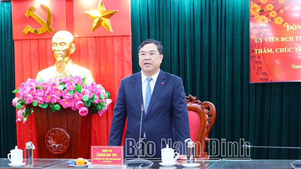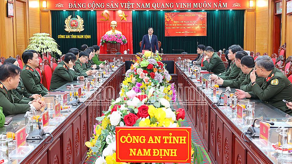 Nhân dịp Tết Nguyên đán Giáp Thìn 2024, thay mặt Tỉnh ủy, HĐND, UBND tỉnh, đồng chí Bí thư Tỉnh ủy Phạm Gia Túc gửi lời chúc mừng năm mới mạnh khỏe, hạnh phúc, thành công tới toàn thể cán bộ, chiến sĩ Công an tỉnh Nam Định.