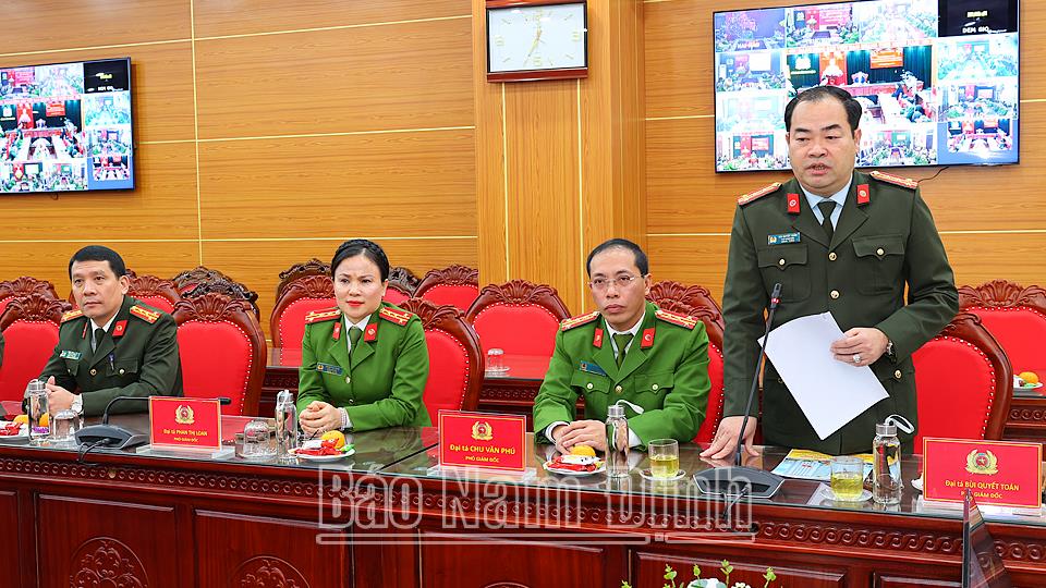 Tại Công an tỉnh, lãnh đạo Công an tỉnh đã báo kết quả nổi bật đạt được trong năm 2023 và công tác đảm bảo an ninh trật tự dịp Tết Nguyên đán Giáp Thìn năm 2024. Trong năm vừa qua, Công an tỉnh tập trung chỉ đạo thực hiện tốt công tác đảm bảo an ninh, trật tự trên địa bàn. Hầu hết các chỉ tiêu, kế hoạch đều hoàn thành và hoàn thành vượt mức. Đã điều tra 381/393 vụ (đạt 96,9%) trong đó án đặc biệt nghiêm trọng đạt tỷ lệ 100%. Xác lập, đấu tranh 23 chuyên án, triệt xóa 11 đường dây, bắt giữ 1.053 vụ tàng trữ, vận chuyển, mua bán và sử dụng trái phép chất ma túy. Phát hiện, khởi tố 74 vụ phạm tội về trật tự quản lý kinh tế, tham nhũng, chức vụ và môi trường. Công tác quản lý Nhà nước về an ninh trật tự đạt được nhiều kết quả, đặc biệt trong thực hiện Đề án 06, công tác PCCC và đảm bảo trật tự an toàn giao thông. Đặc biệt thời gian qua, Công an tỉnh đã tập trung lực lượng, triển khai đồng bộ toàn diện các biện pháp nghiệp vụ, thực hiện đợt cao điểm tấn công, trấn áp tội phạm, bảo đảm an ninh trật tự trong dịp Tết Nguyên đán Giáp Thìn, đảm bảo cho nhân dân vui Tết, đón Xuân an toàn.