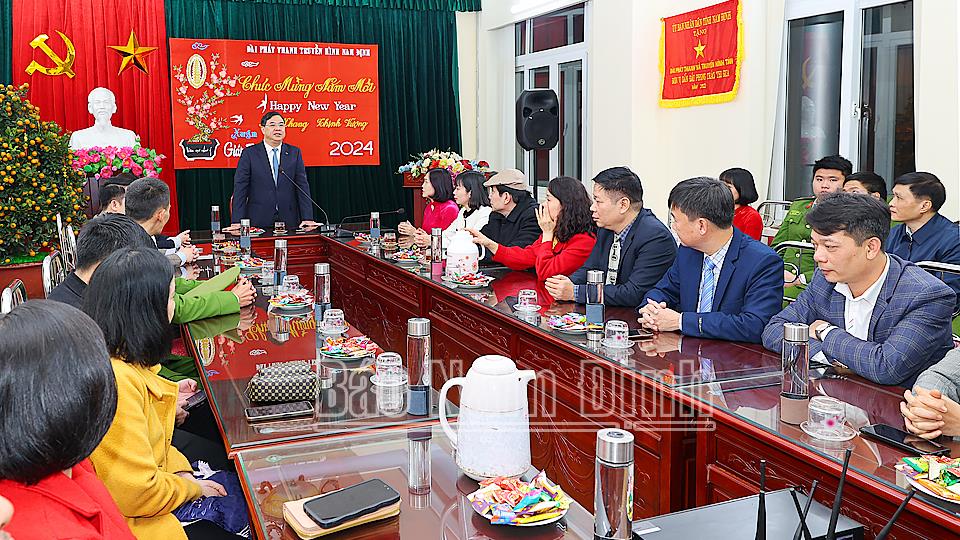 Tại Đài phát thanh và Truyền hình tỉnh, lãnh đạo Đài phát thanh và Truyền hình tỉnh đã báo cáo khái quát hoạt động của đơn vị thời gian qua, cùng với nâng cao chất lượng các chương trình phát sóng, đơn vị đã xây dựng các chương trình phát thanh, truyền hình phong phú trong những ngày Tết. Đơn vị đang từng bước nỗ lực đổi mới cả về nội dung, hình thức, không ngừng nâng cao chất lượng tuyên truyền, đáp ứng yêu cầu nhiệm vụ, nhu cầu tiếp nhận thông tin của cán bộ, đảng viên, nhân dân.